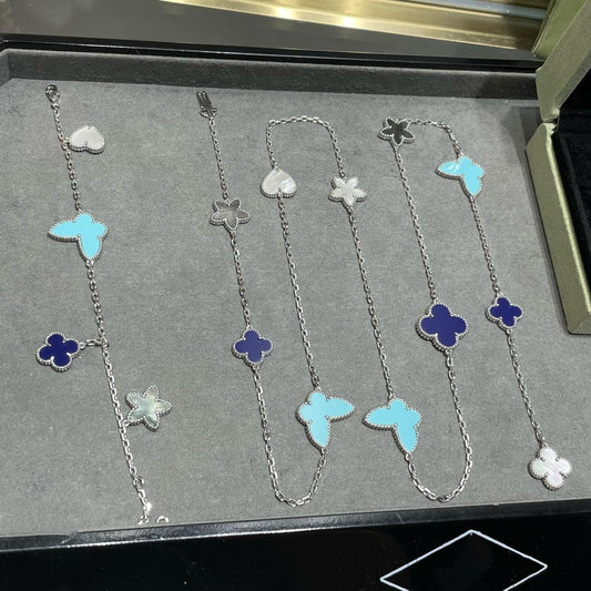 [Vicky]LUCKY CLOVER SILVER 11 MOTIF NECKLACE