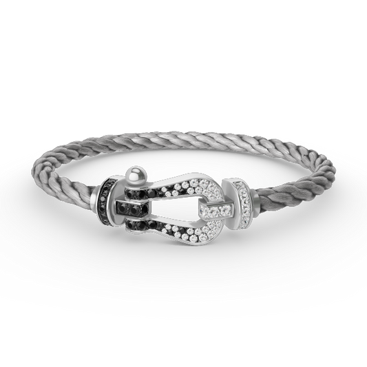 [Vicky]FORCE GROSSES HUFEISEN-ARMBAND MIT SCHWARZEN WEISSEN DIAMANTEN, SILBER